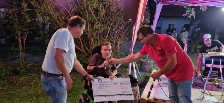 „Project F“ aus Fuchsberg hatte gefeiert, aufgerundet und den Erlös in Höhe von 2.000 Euro für Lukas als Spende dabei.
