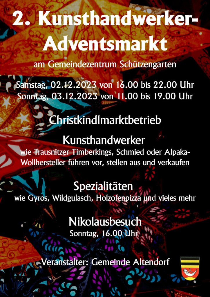 02. und 03. Dezember 2023: 2. Kunsthandwerker-Adventsmarkt in Altendorf