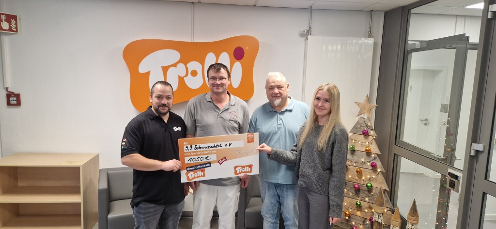 Auf der Weihnachtsfeier des Fruchtgummi-Herstellers Trolliam Standort Neunburgvorm Wald wurden im Dezember 2023 insgesamt 1.135 Euro gesammelt. Der Betrag wurde unserem Verein gespendet. „Wir freuen uns sehr, dass wir mit der Spendensumme einen Beitrag leisten und Menschen in schwierigen Lebensumständen unterstützen können“, sagt Betriebsratsvorsitzender Georg Voith. Und wir sagen herzlichen Dank dafür!